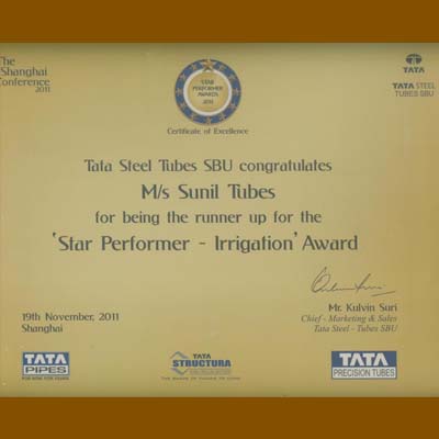 We have got award for 'Best in Plumbing Segment' in East Zone from CMD of Prince Pipes & Fittings Ltd. at a glittering function at Hotel J.W. Marriott, Goa a couple of years back.