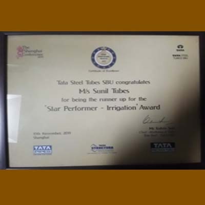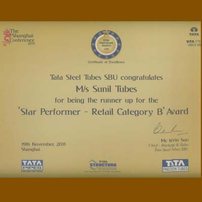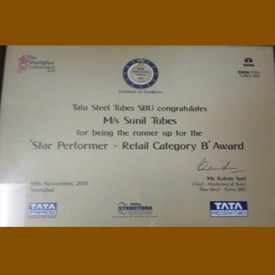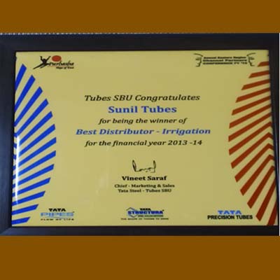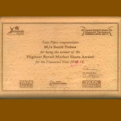 We have got award for 'Best in Plumbing Segment' in East Zone from CMD of Prince Pipes & Fittings Ltd. at a glittering function at Hotel J.W. Marriott, Goa a couple of years back.